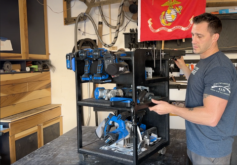 These build plans are for a mobile tool cart. It is specifically designed for Kreg power tools but will work with other tools, you just may have to change some measurements. It can be built from a single piece of plywood.